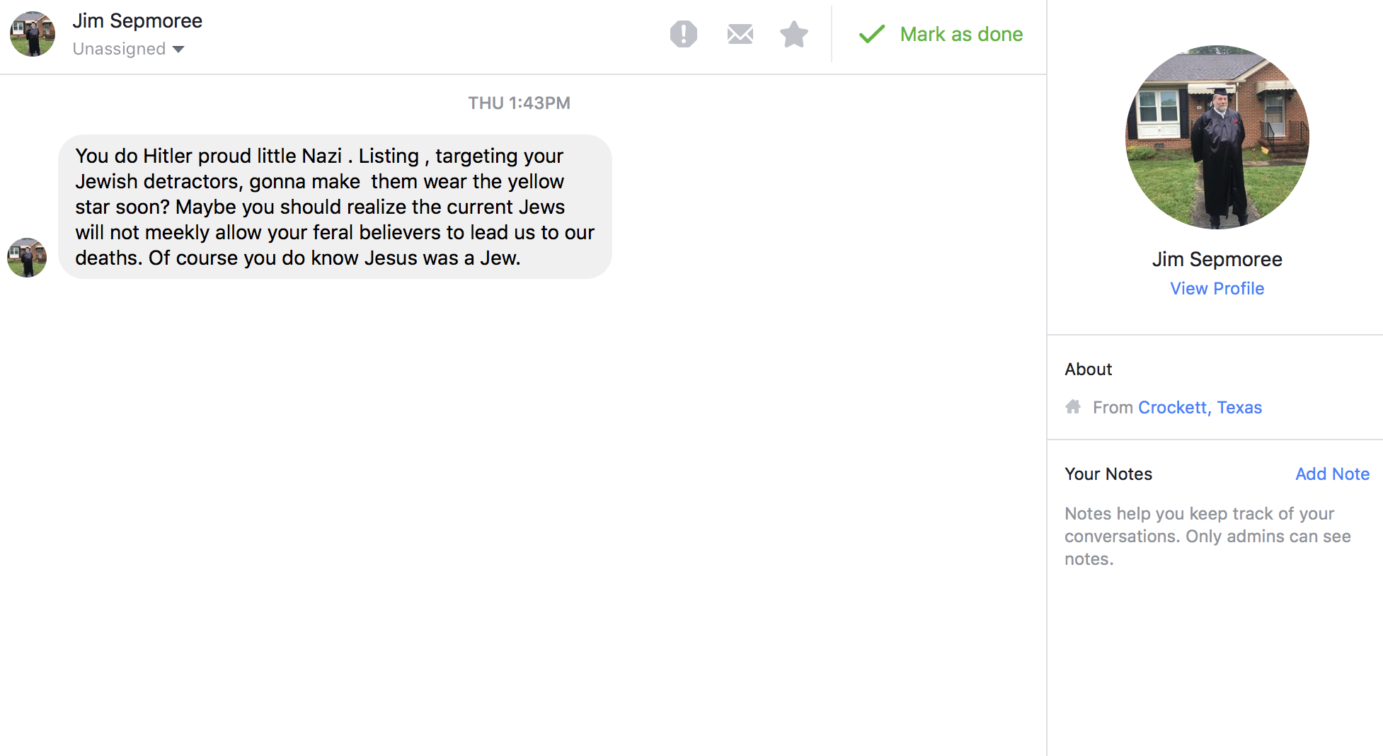 This message is for Paul Nehlen and and all of the lunatics that are supporting him and trying to get him elected. I’m just one of the many many many many people that reported Paul to Twitter and got his account suspended. So we just want to let you all know that hate will not be tolerated in our country. And we’re going to take care of it. Have a good day.